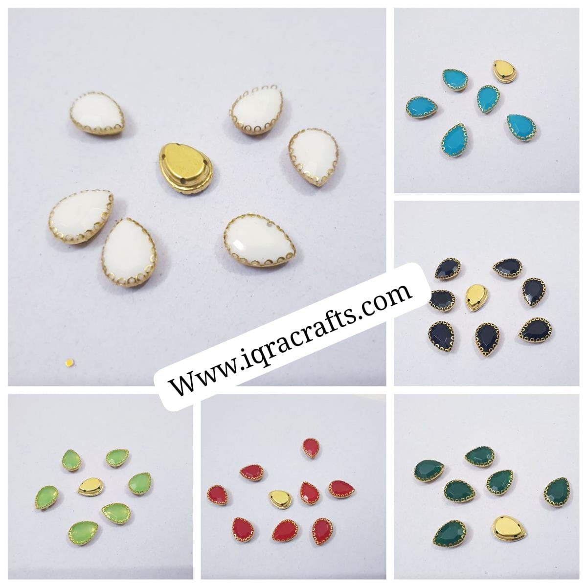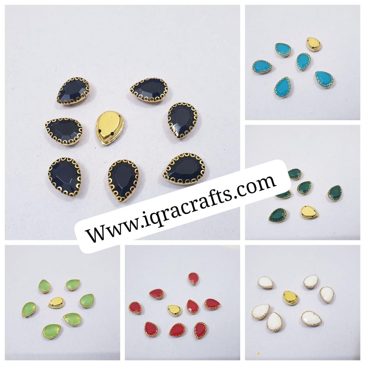 12 Pcs White Colorful Tear Drop Glass Sew On Rhienstones with Golden Base Crystal ( 15x10mm )