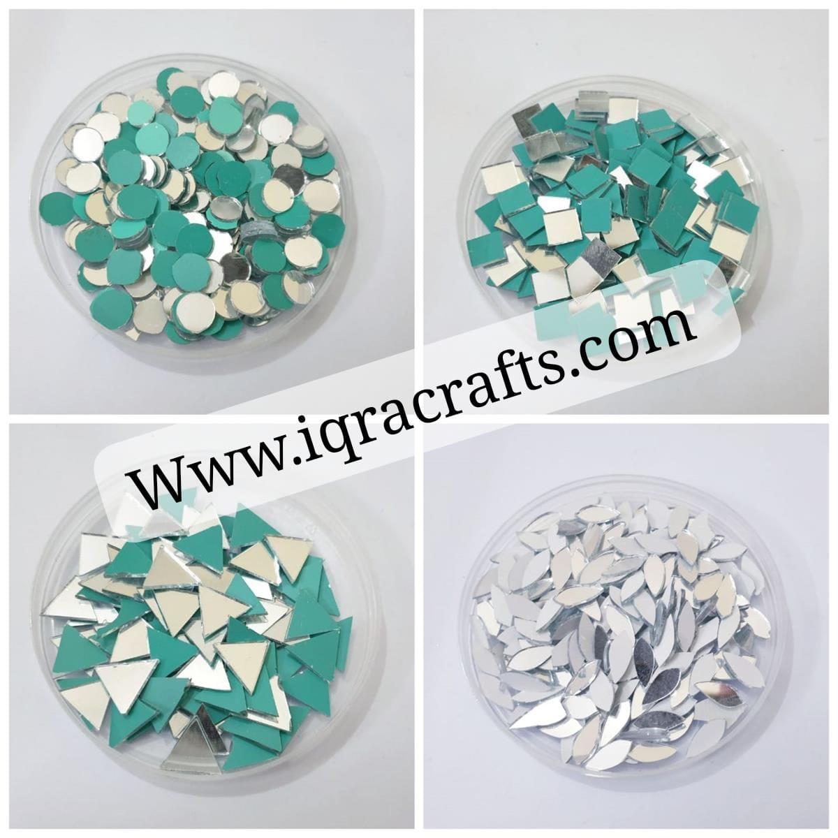 200 Pcs (50 Pcs Each) Round, Square & Triangle & Leaf Shape DIY Small Craft Mirrors