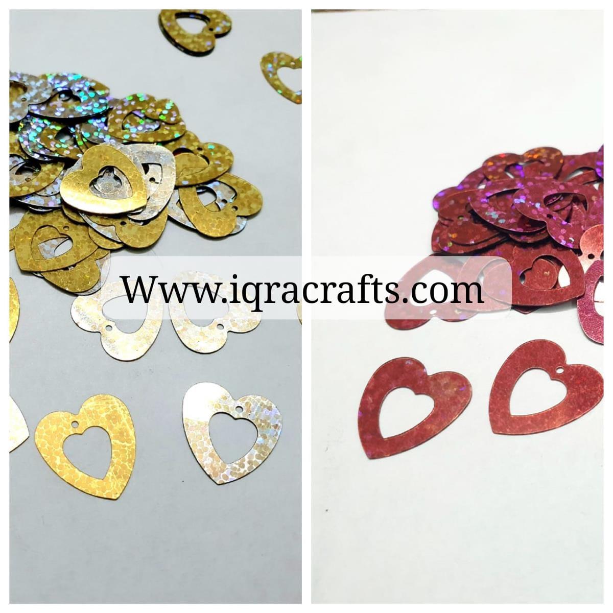 100 Pcs Heart Shape Sitaray In Gold Silver & Maroon Color , Beautiful Design Loose Sequins Craft Supplies 1.6 cm